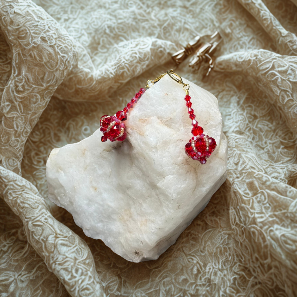 💎 Hechos a mano con cristales rojos intensos y detalles dorados, capturan la esencia del fuego y la elegancia en cada movimiento.